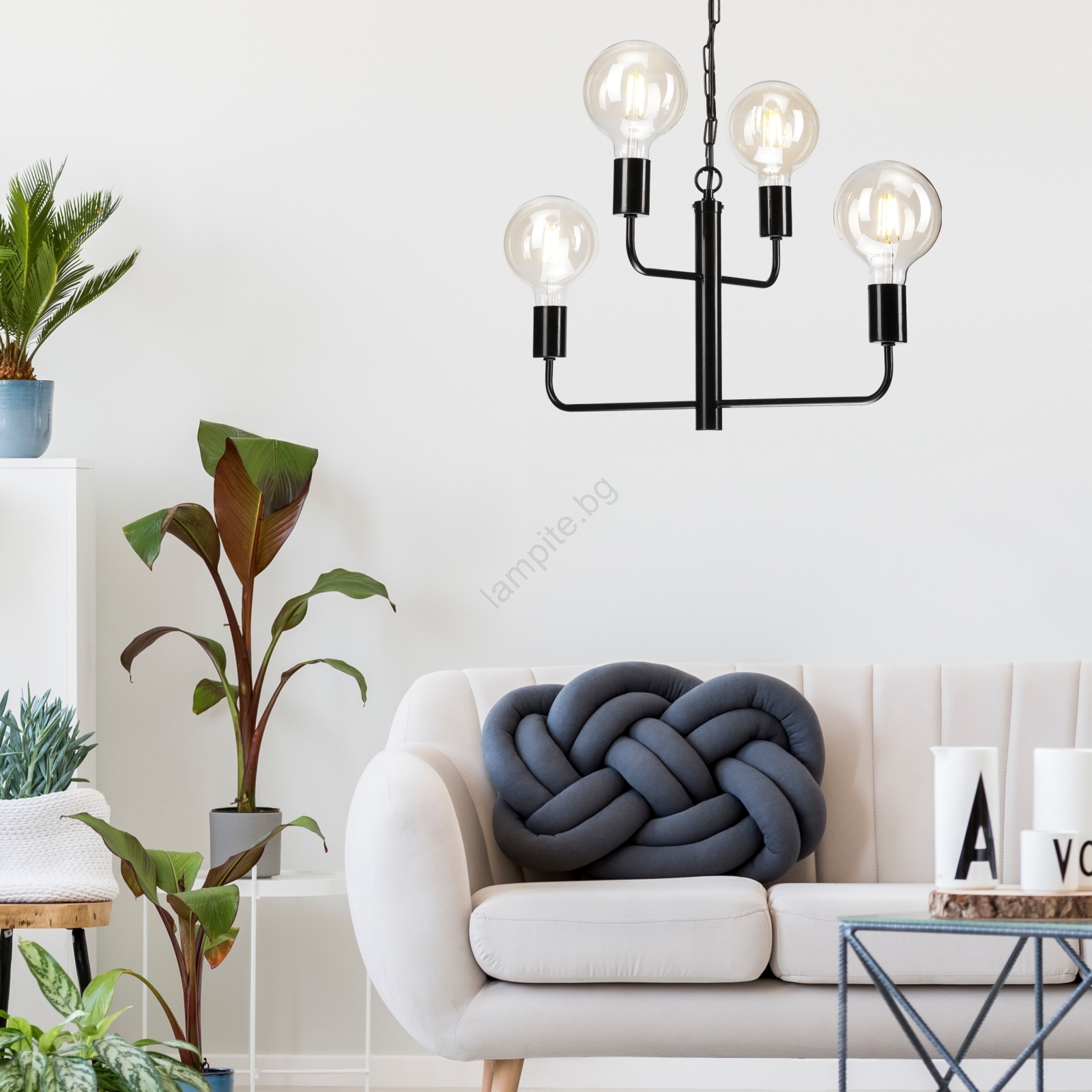 Висящ полилей ORLANDO 4xE27/60W/230V черен се отличава с приятен и функционален дизайн.  Подходяща е крушка с цокъл E27. Тук можете да закупите и други крушки на изгодни цени. Ще имате интересно допълнение към дома си.