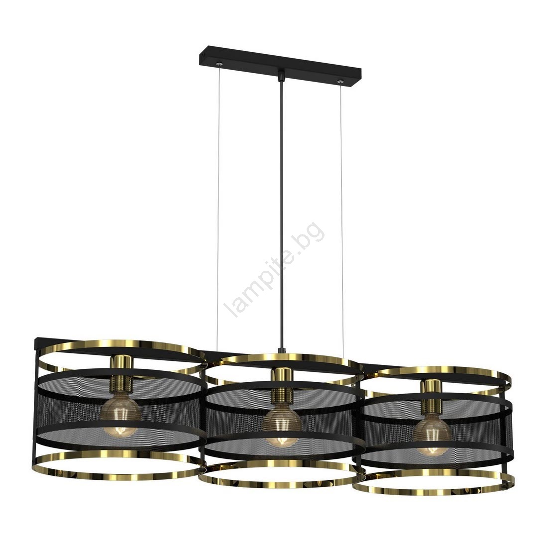 Висящ полилей RIM 3xE27/60W/230V черен/златист се отличава с приятен и функционален дизайн.  Подходяща е крушка с цокъл E27. Тук можете да закупите и други крушки на изгодни цени. Ще имате интересно допълнение към дома си.