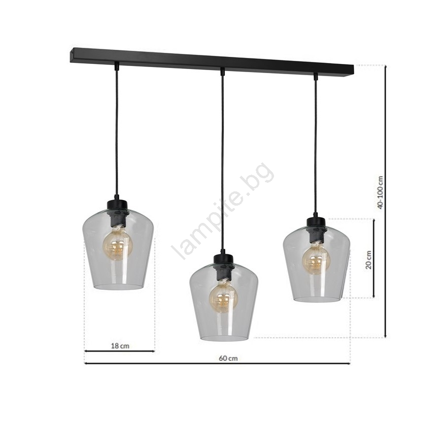 Висящ полилей SANTIAGO 3xE27/60W/230V прозрачен