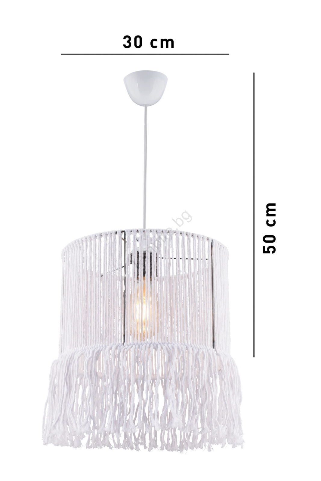 Vисяща лампа на шнур NESS MACRAME 1xE27/40W/230V бяла се отличава с приятен и функционален дизайн.  Подходяща е крушка с цокъл E27. Тук можете да закупите и други крушки на изгодни цени. Ще имате интересно допълнение към дома си.