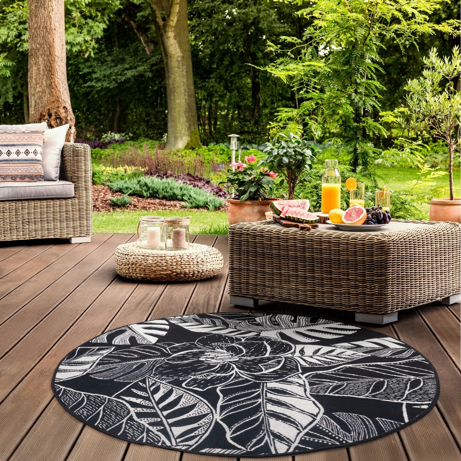 Външен килим JUNGLE 135 см черен/бял/листен десен