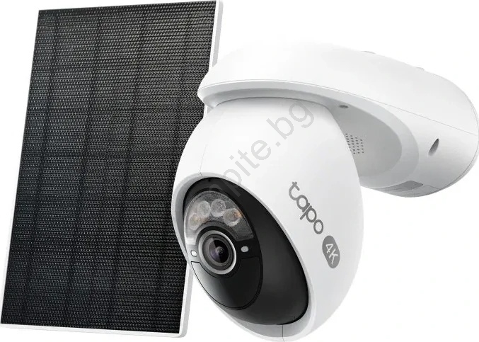 • Захранването на камерата се осигурява от вградена презареждаема батерия, която се поддържа заредена от включения соларен панел без нужда от свързване към мрежата.