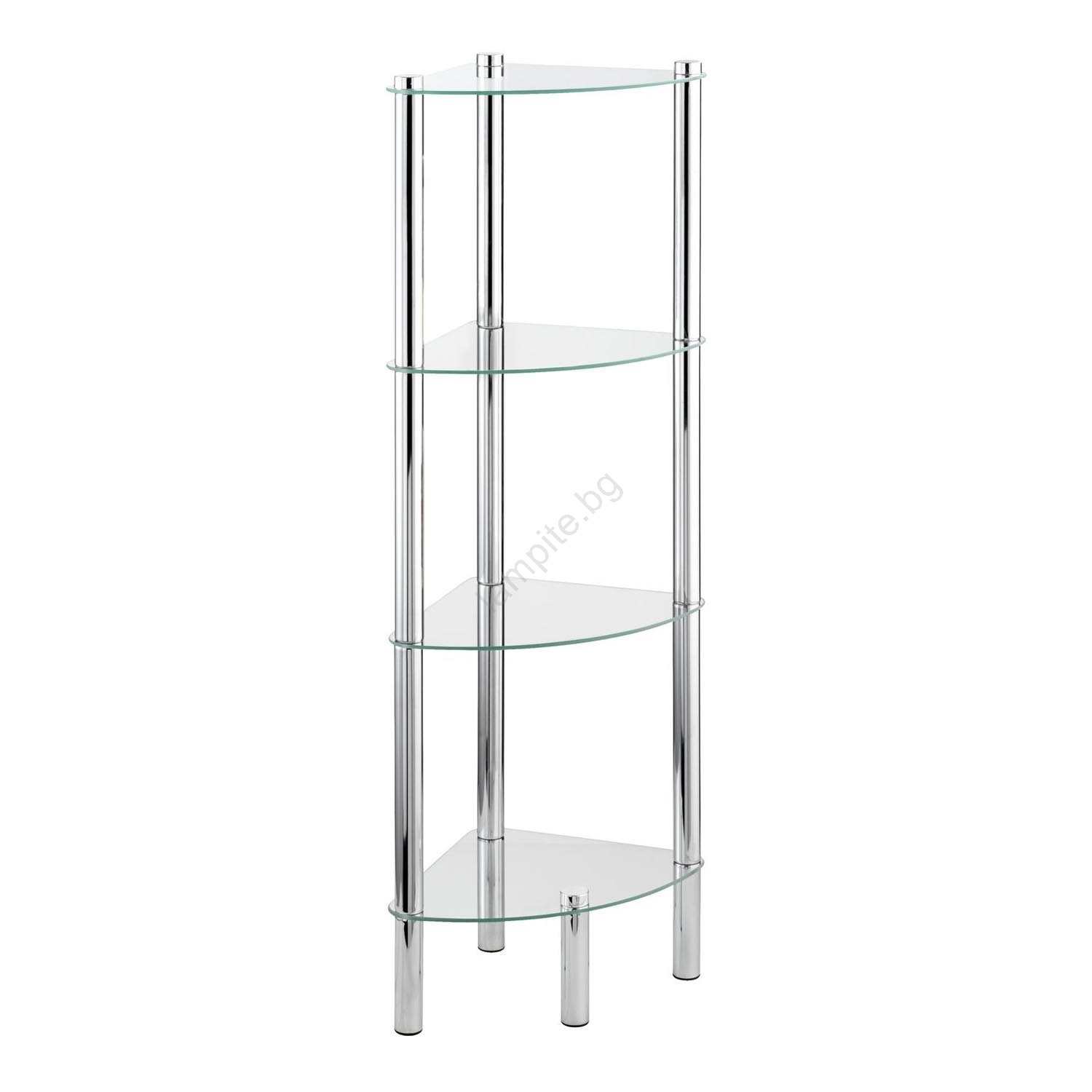 • Елегантен ъглов рафт с 4 полици от здраво закалено стъкло.