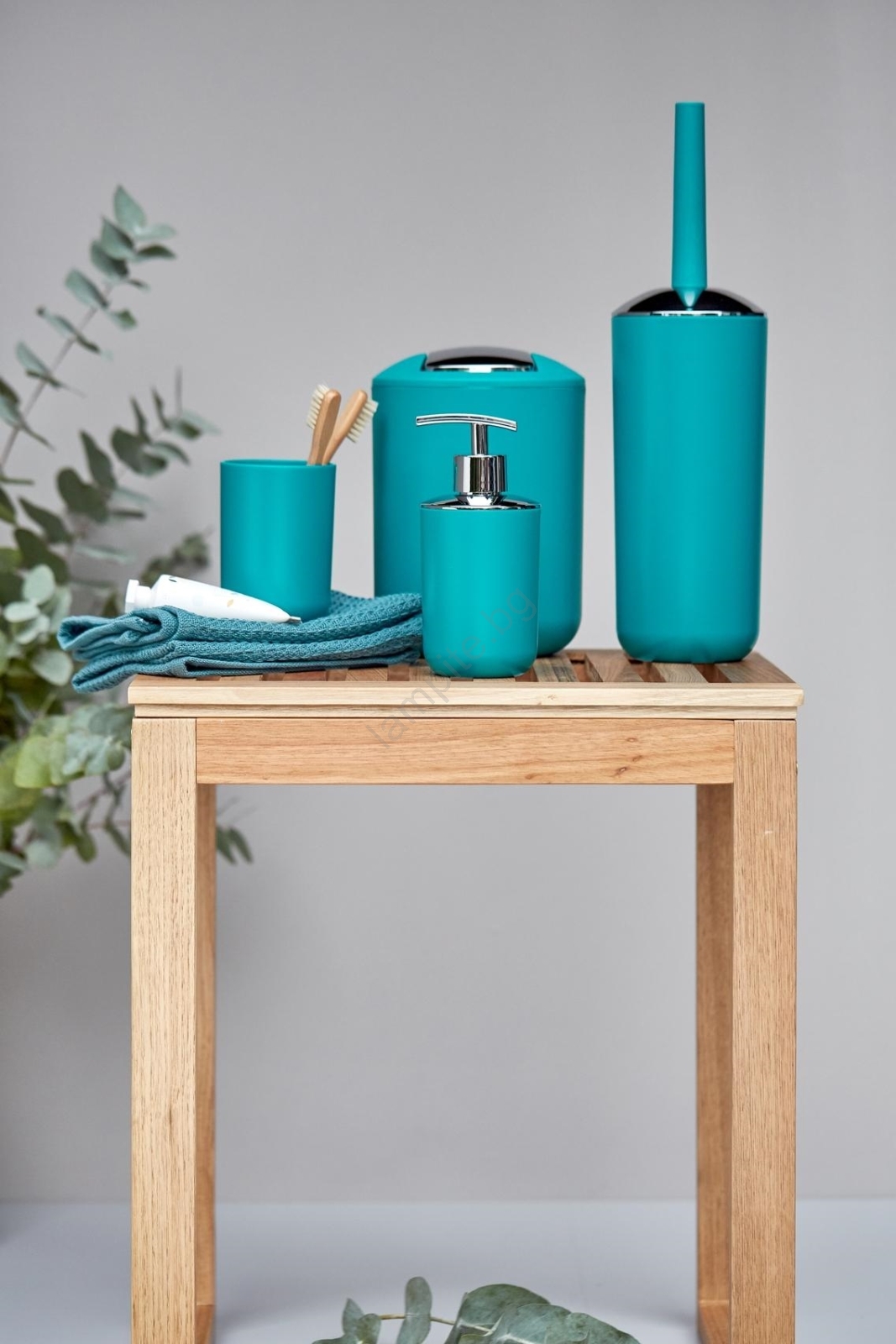 • Модерна четка за тоалетна в тюркоазено изпълнение със стилни хромирани елементи.