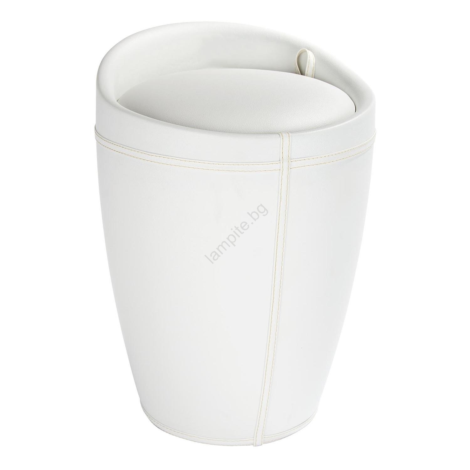 • Модерна табуретка за баня с елегантен вид на бяла кожа.