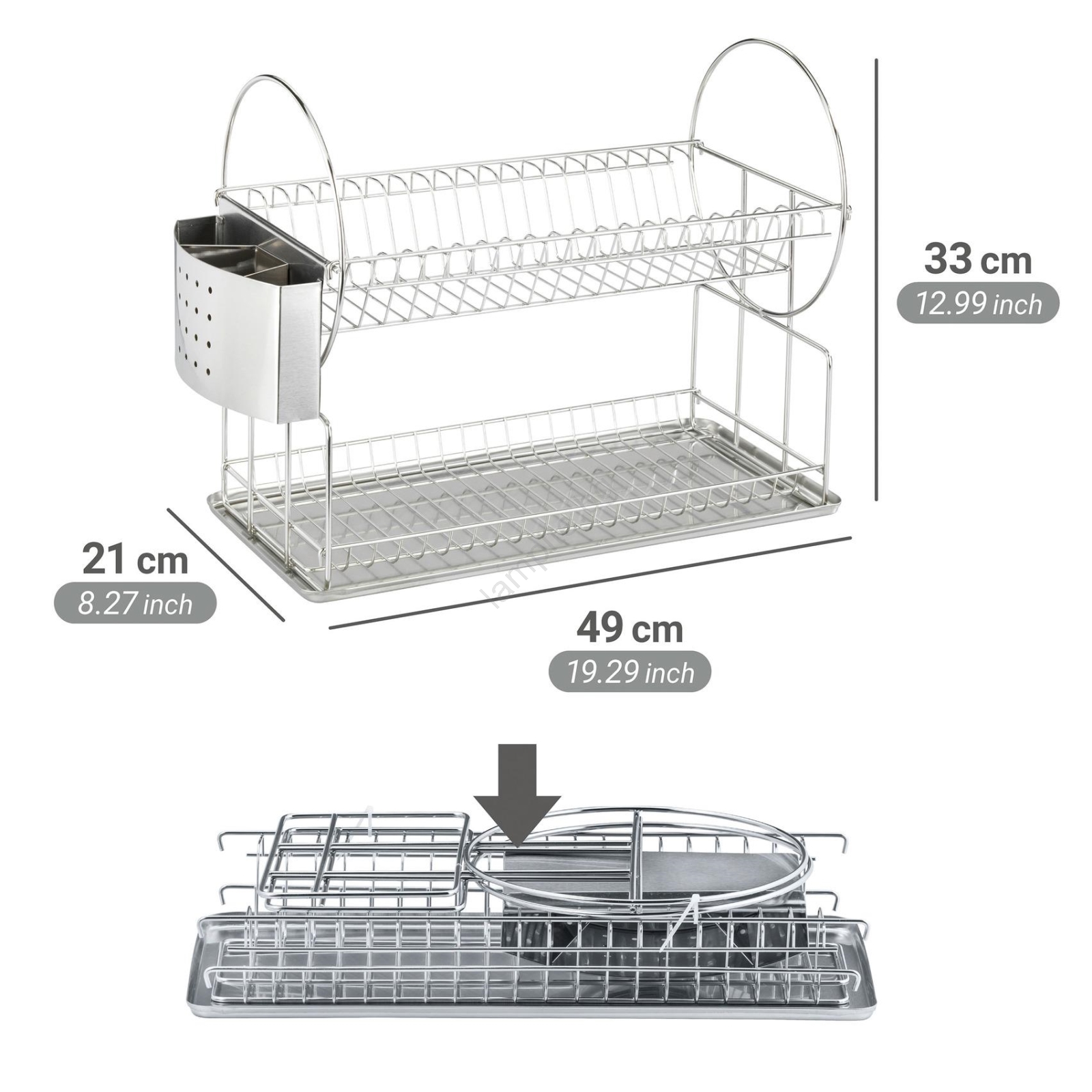 • Двуетажен отцедник за съдове от висококачествена неръждаема стомана.