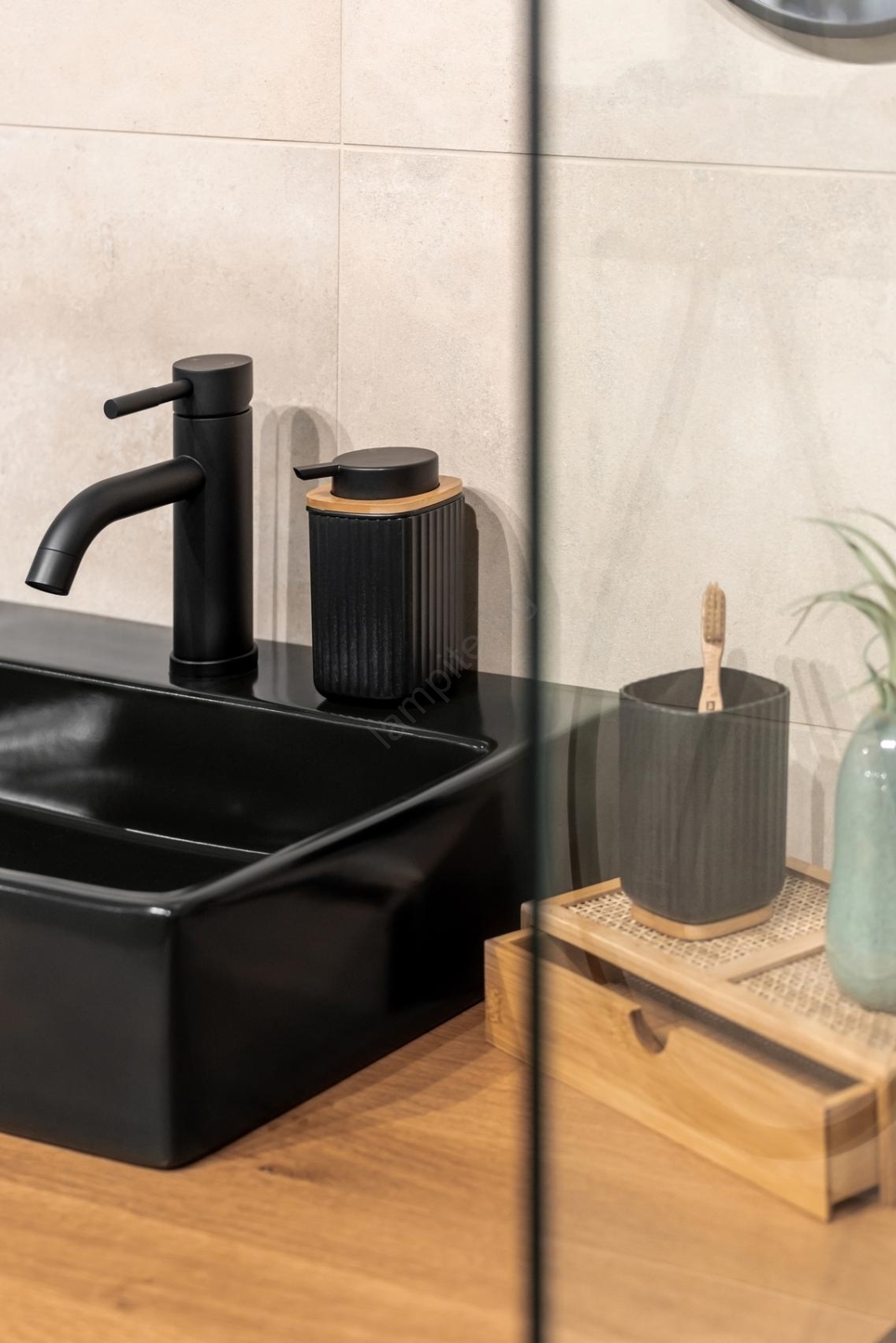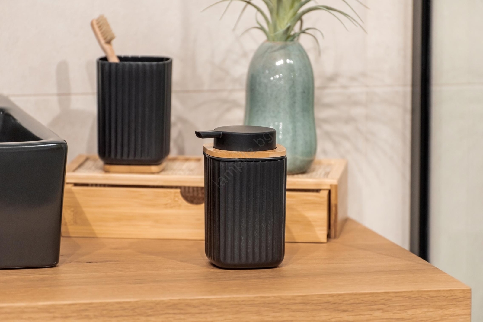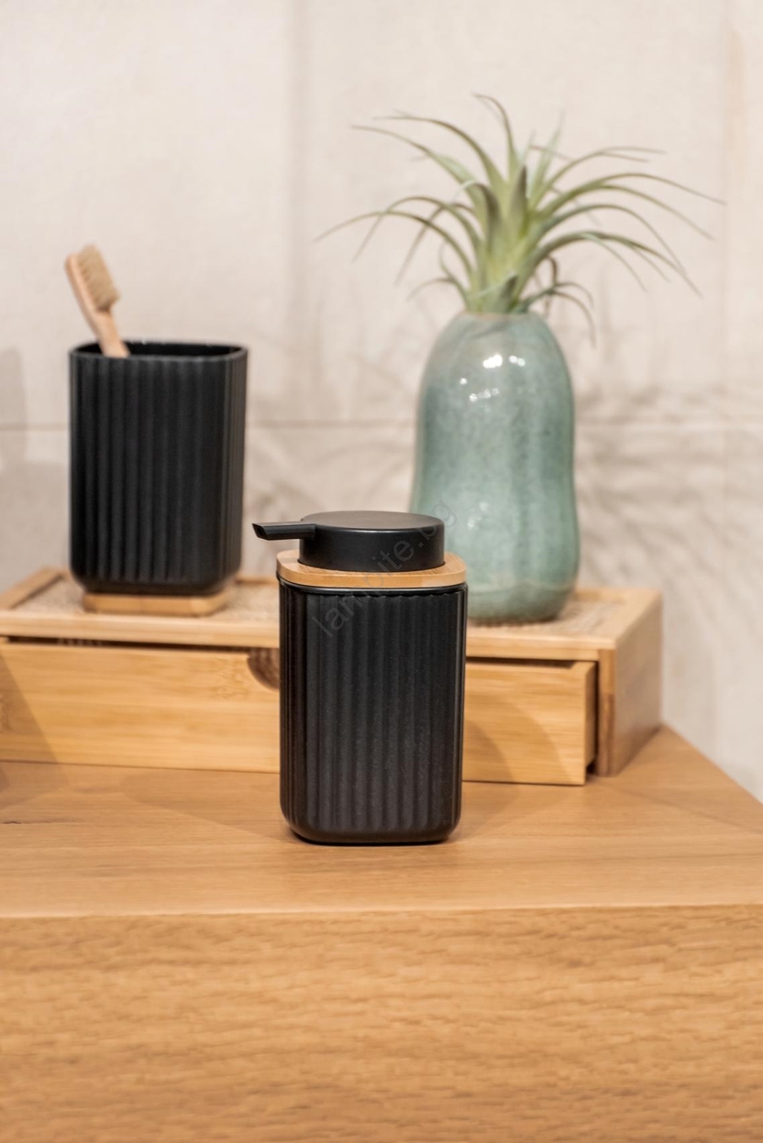 • Комбинация от черна пластмаса и естествен бамбуков детайл на капачката.