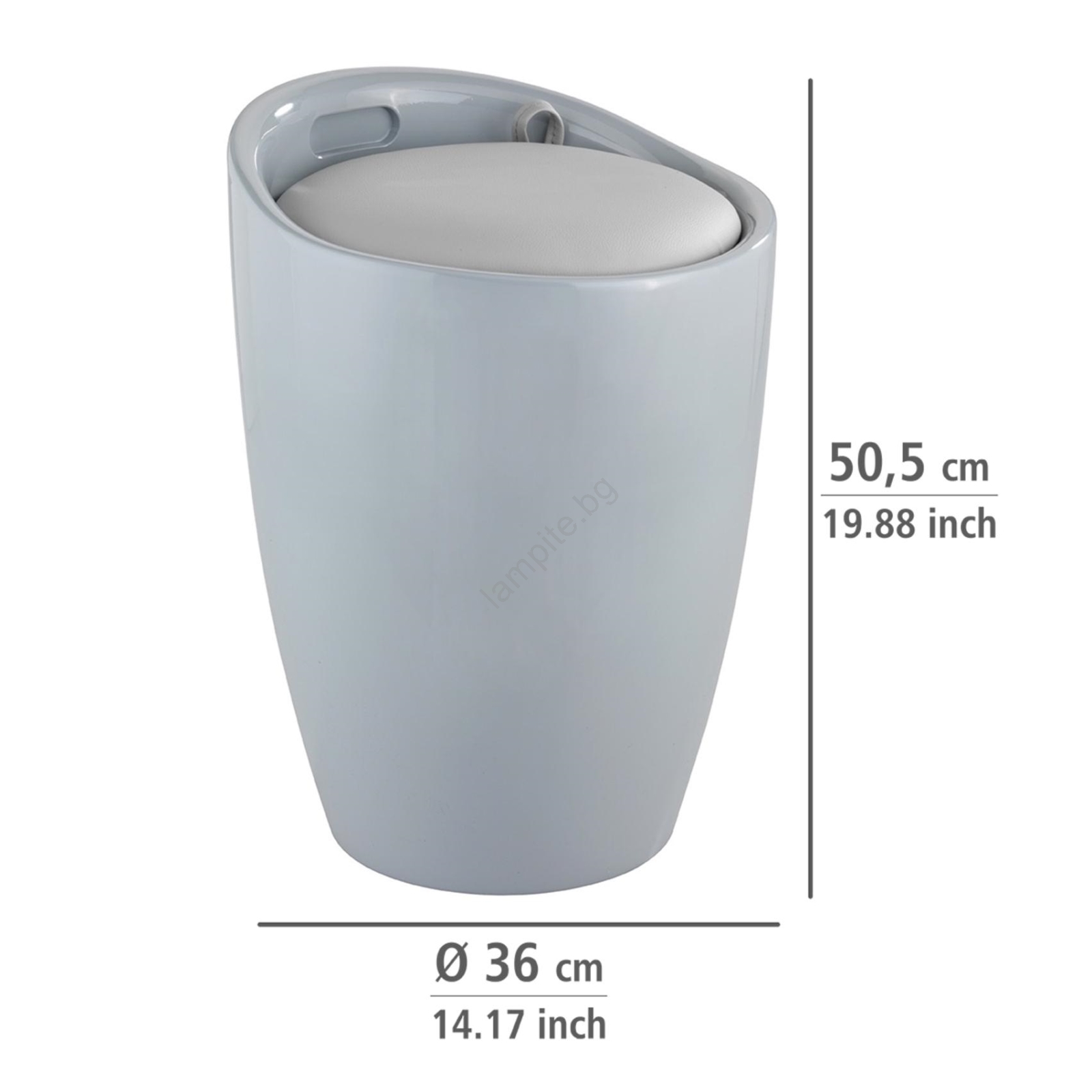 • Модерно столче за баня със стилен сив дизайн.