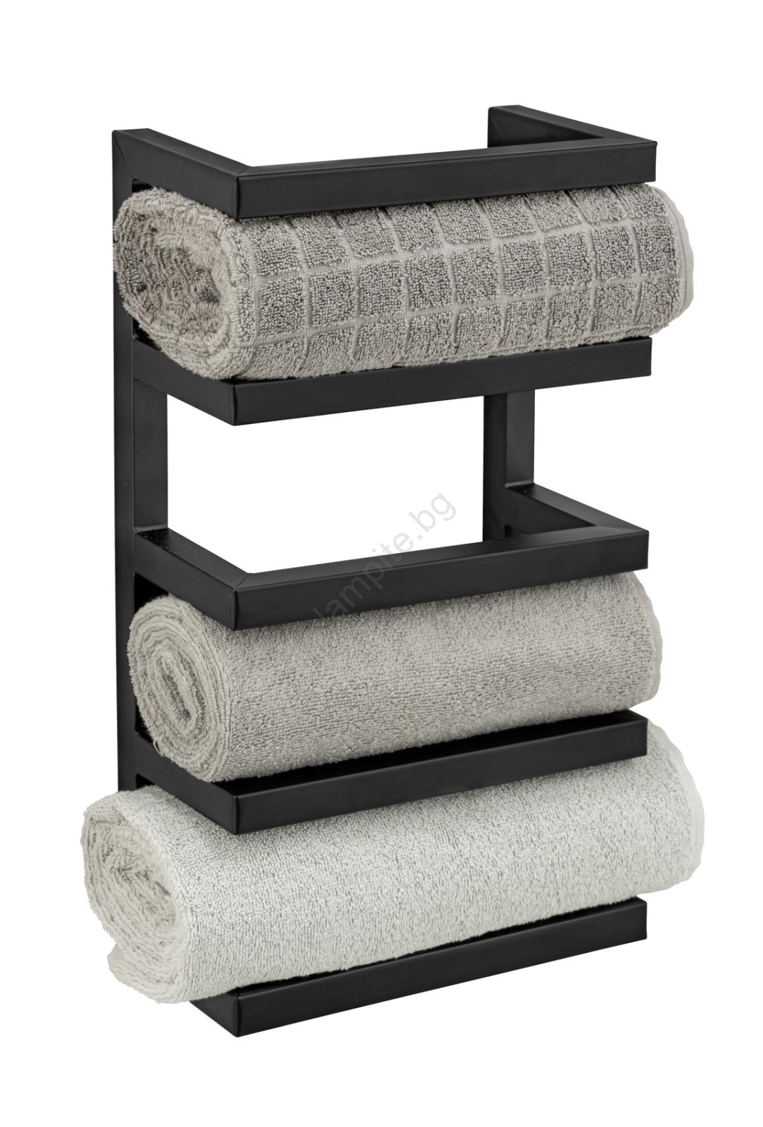 • Стилен стенен държач за кърпи в матово черно изпълнение.