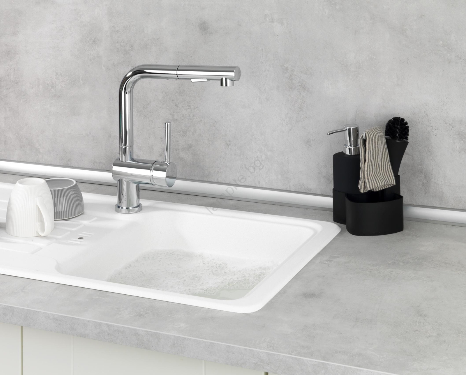 • Включва практична четка за съдове с модерен дизайн.