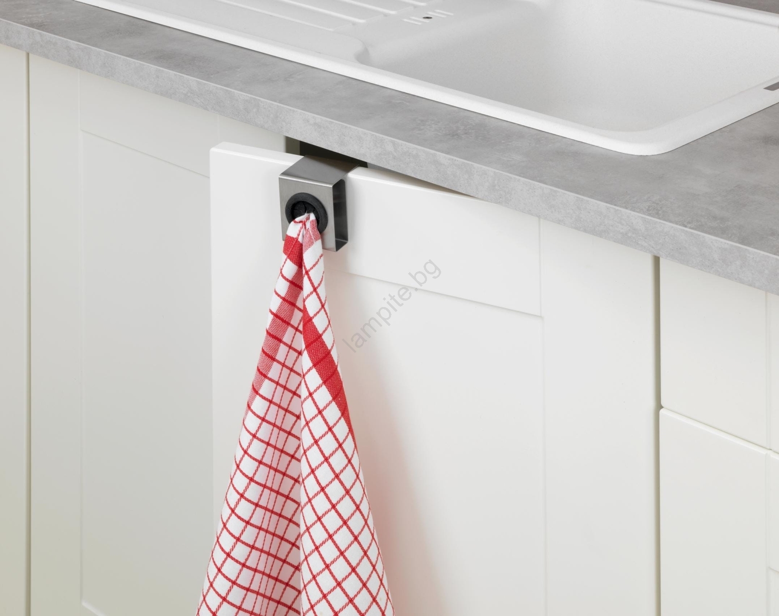 • Практична кукичка за закачане върху вратичките на кухненски шкафове и на врати.