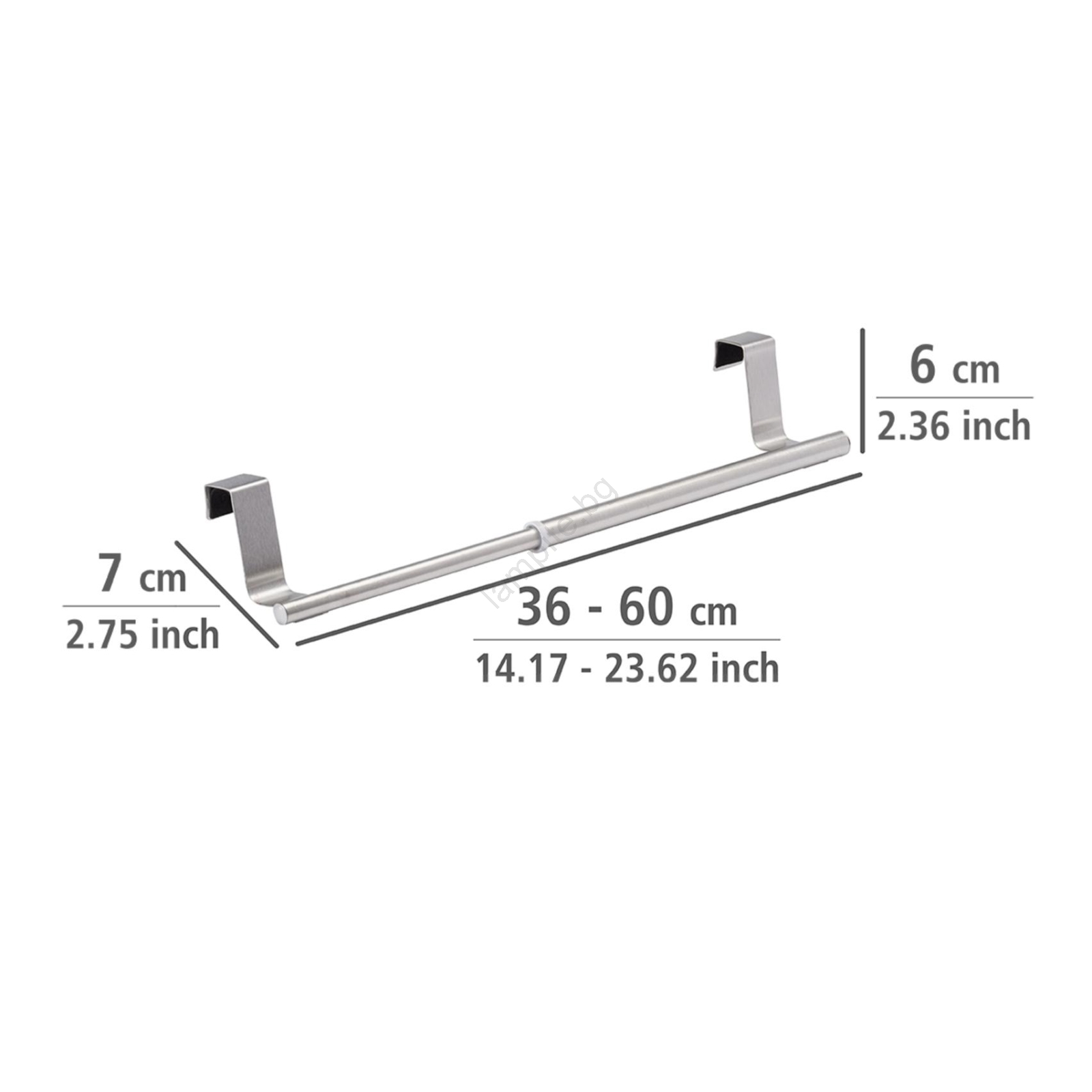 • Практичен телескопичен прът за кърпи с регулируема дължина 36–60 см.