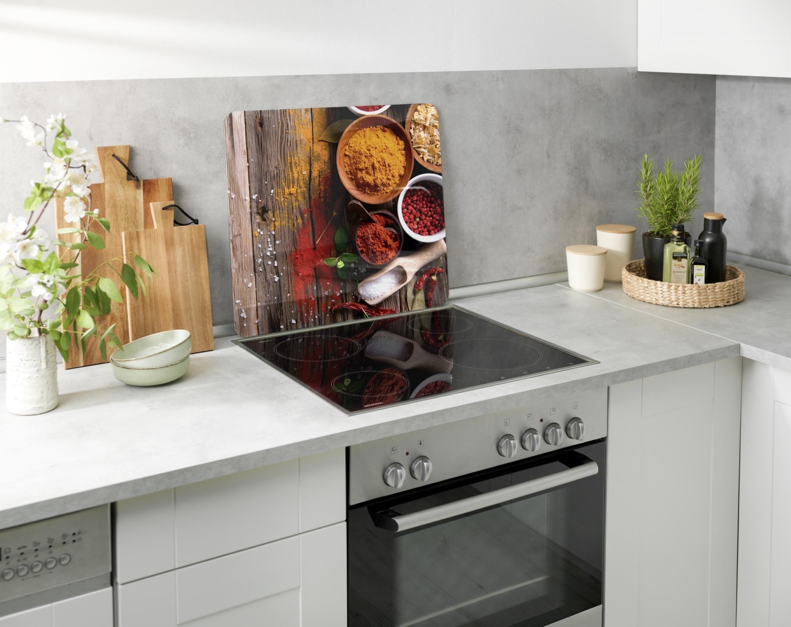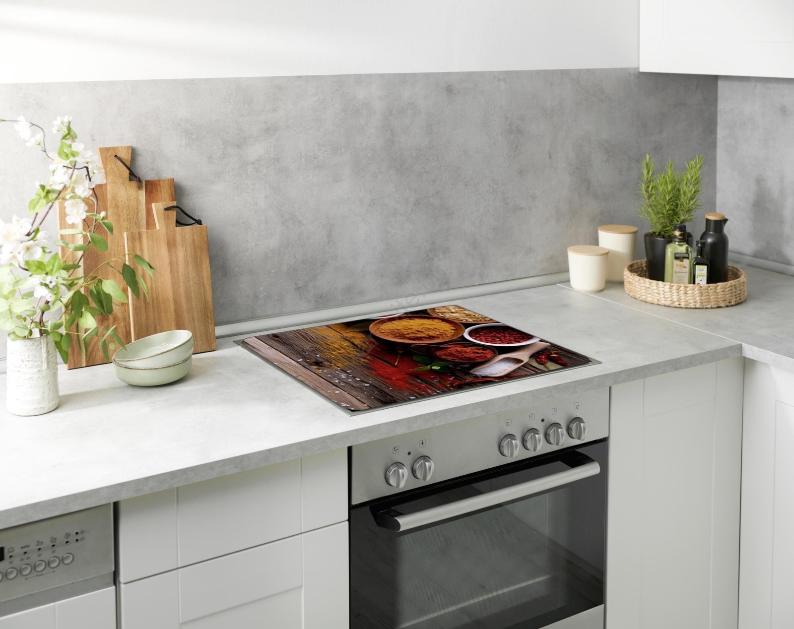 • Стилен кухненски плот с мотив на подправки за модерен вид на кухнята.