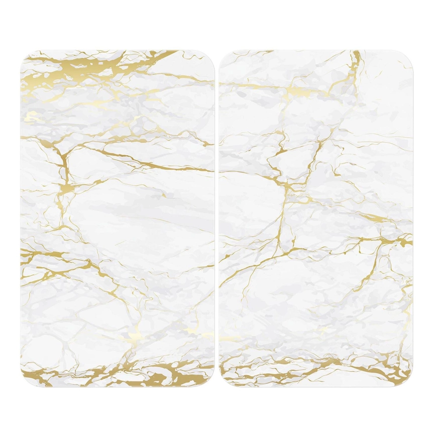• Елегантен комплект от 2 покривни плочи за котлон с мраморен мотив в бяло и златисто.