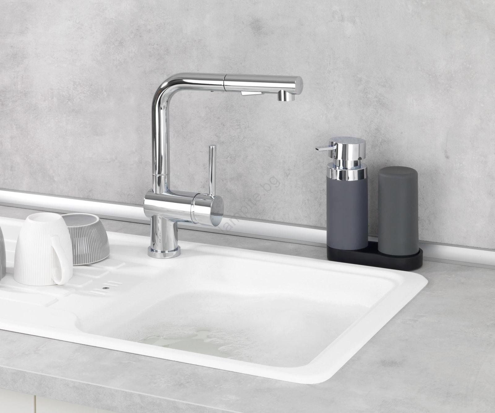 • Тънък дизайн, който оптимално използва тесното пространство зад мивката.