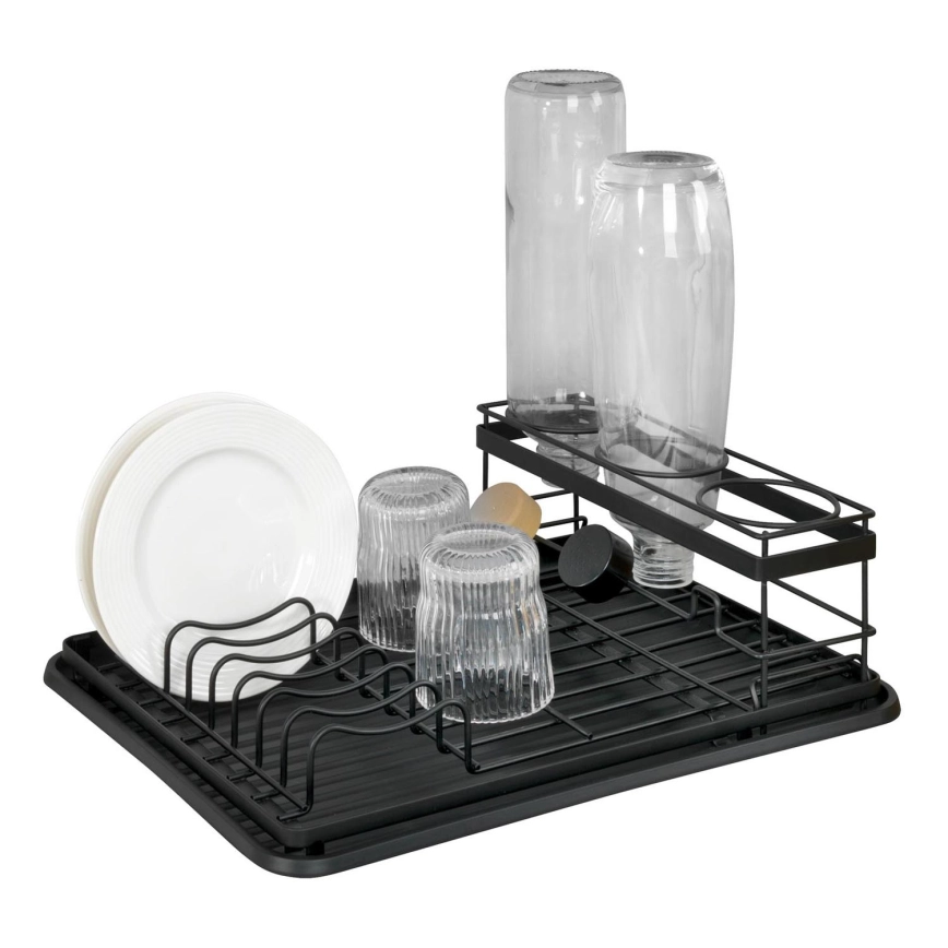 • Модерен сушилник за съдове със стилен черен дизайн.
