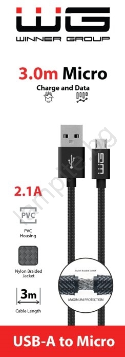 Winner Group - USB кабел Micro USB / USB-A 3m черен