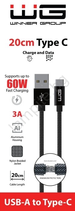 Winner Group - USB кабел USB-C / USB-A 60W 20 см черен