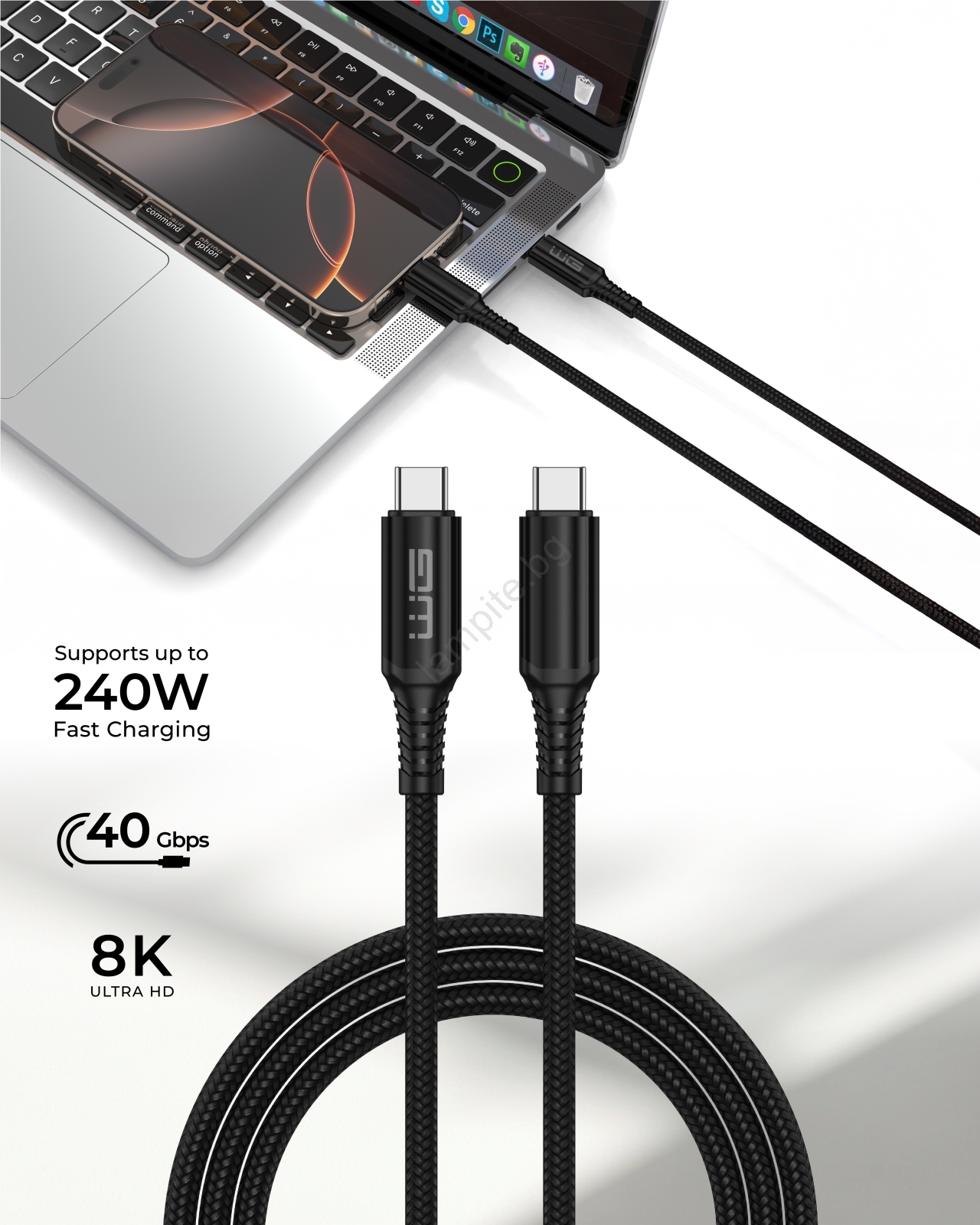 • Благодарение на поддръжката на Fast Charging, може да зарежда до 83 пъти по-бързо от обикновен USB кабел, не само мобилни телефони, но и таблети, лаптопи и други устройства с USB-C порт.