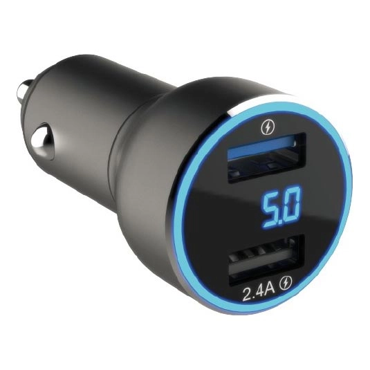 • Този универсален автомобилен зарядно устройство позволява едновременно зареждане на до две устройства чрез стандартен автомобилен контакт с напрежение 12 или 24 V.