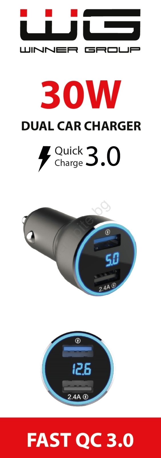 Winner Group - Зарядно за кола с дисплей 2xUSB-A Power Delivery 30W черен