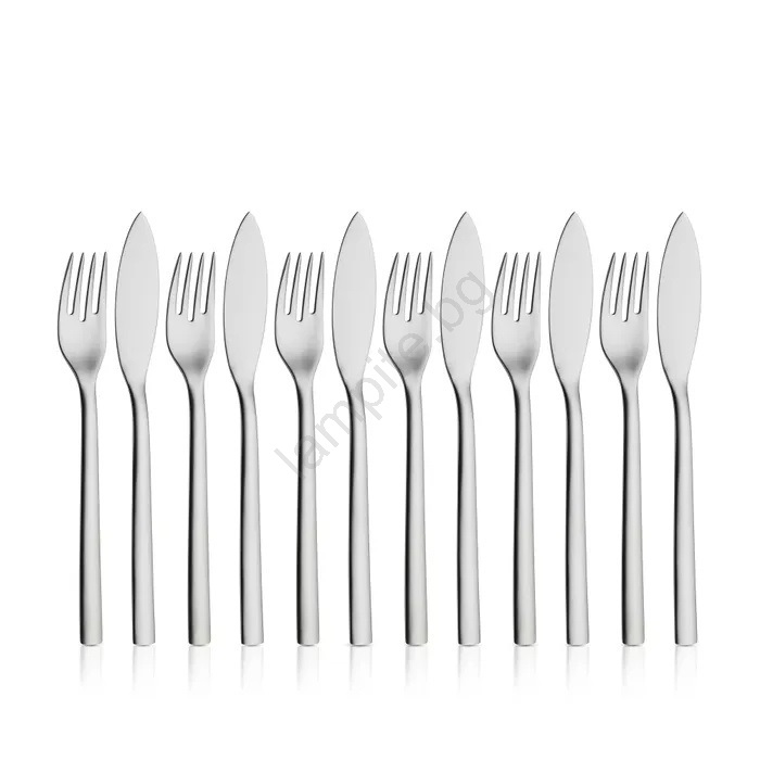 • Специален комплект от 12 прибора, предназначен за сервиране на риба – съдържа 6 ножа и 6 вилици.