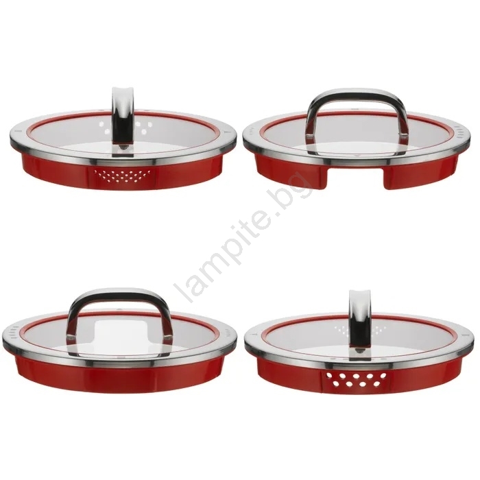 • Капаците са изработени от комбинация неръждаема стомана 18/10 Cromargan® и предлагат практична функция за контролирано изливане без използване на цедка.