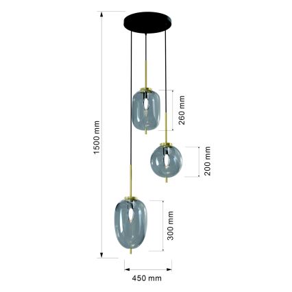 Wofi 5007-302 - Пендел BELLEVILLE 3xE14/40W/230V черен/златист