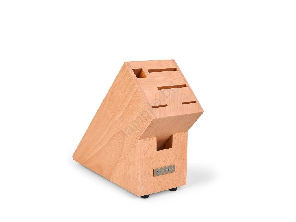 • Блокът за ножове е изработен от буково дърво и предлага място за съхранение на общо 4 ножа, стоманен прът за поддържане на остротата и кухненски ножици.