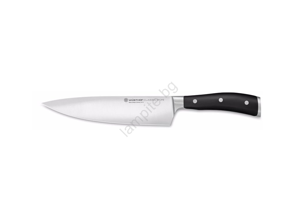 • Кованият нож е изработен от едно цяло парче хром-молибден-ванадиева неръждаема стомана.