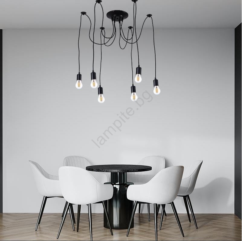 Захранващ кабел 6xE27/60W/230V паяк черен се отличава с приятен и функционален дизайн.  Подходяща е крушка с цокъл E27. Тук можете да закупите и други крушки на изгодни цени. Ще имате интересно допълнение към дома си.