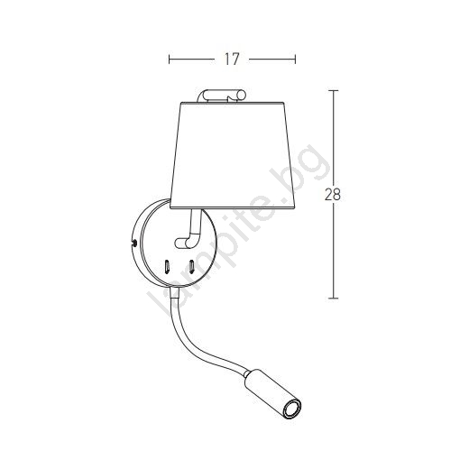 • Стенно осветително тяло с текстилен абажур (E27 - не е включена в комплекта) и гъвкава LED лампа за четене.