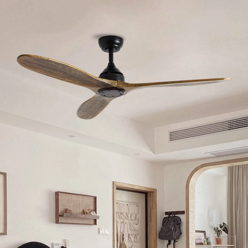 • ZEVENTI - Таванен вентилатор LIONI Wi-Fi Tuya черен/дъб + дистанционно управление